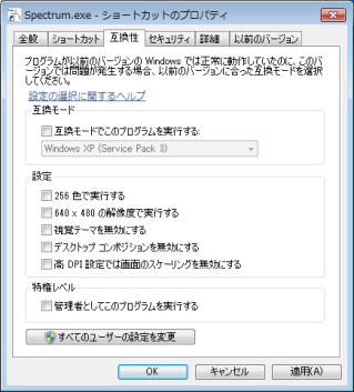 互換性タブをクリックする